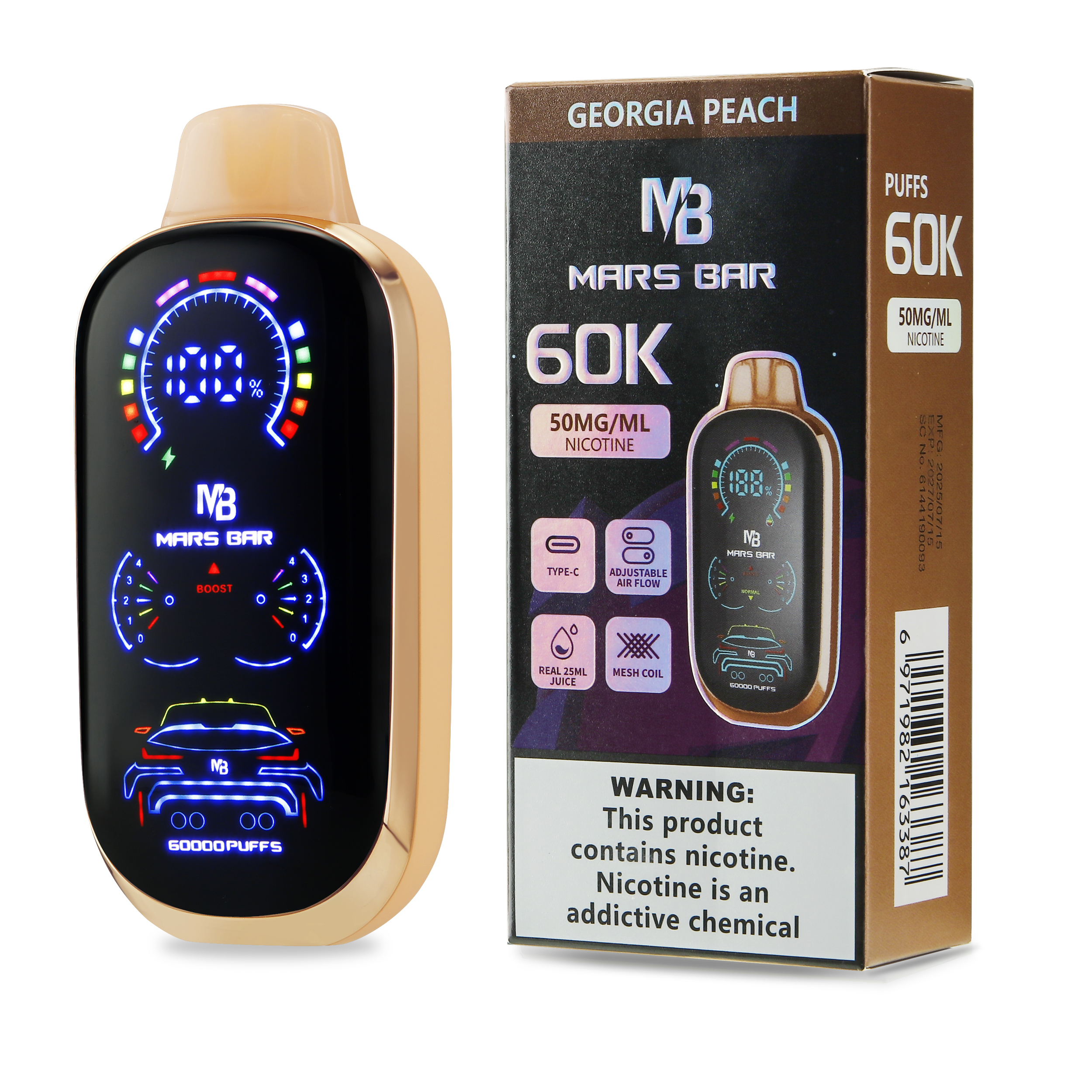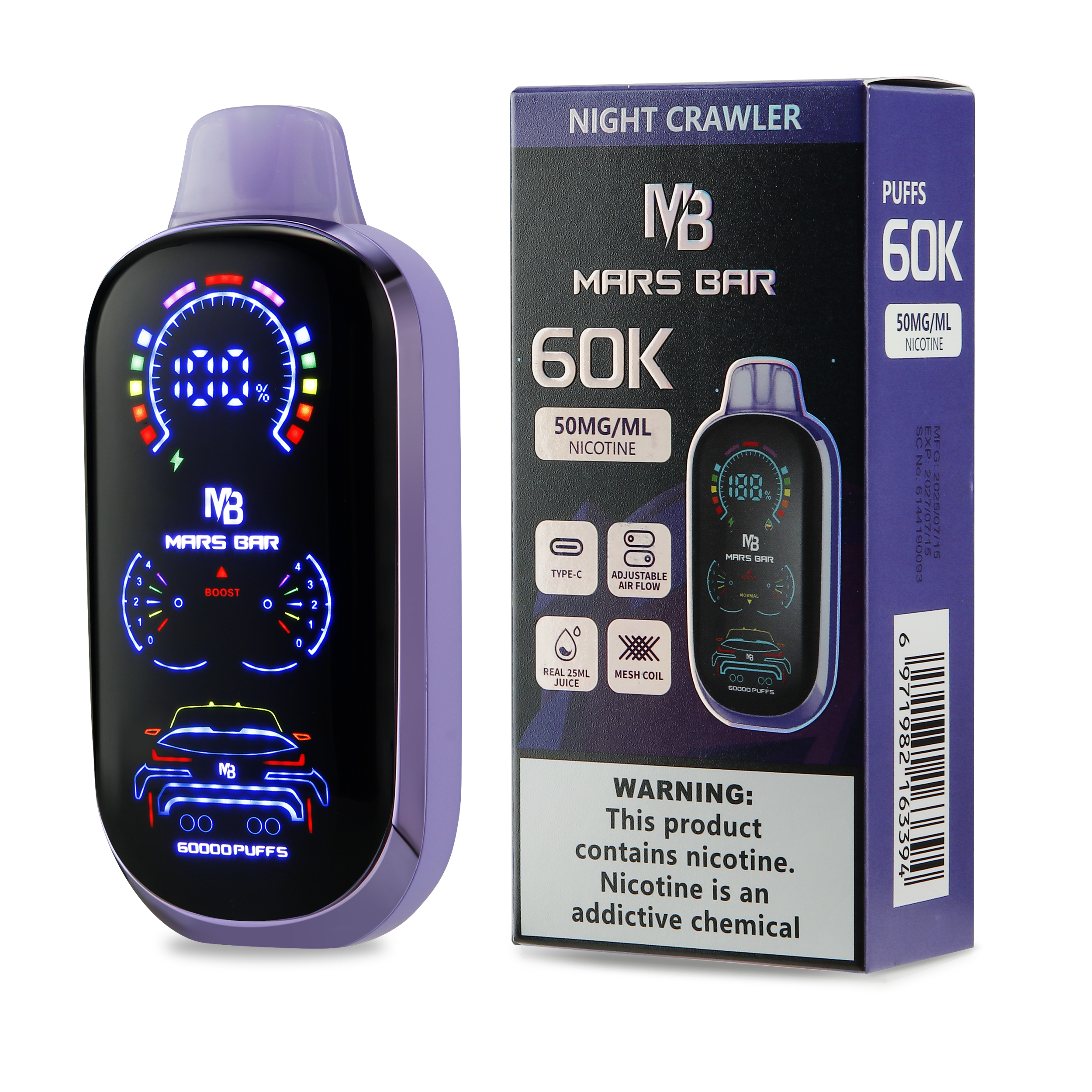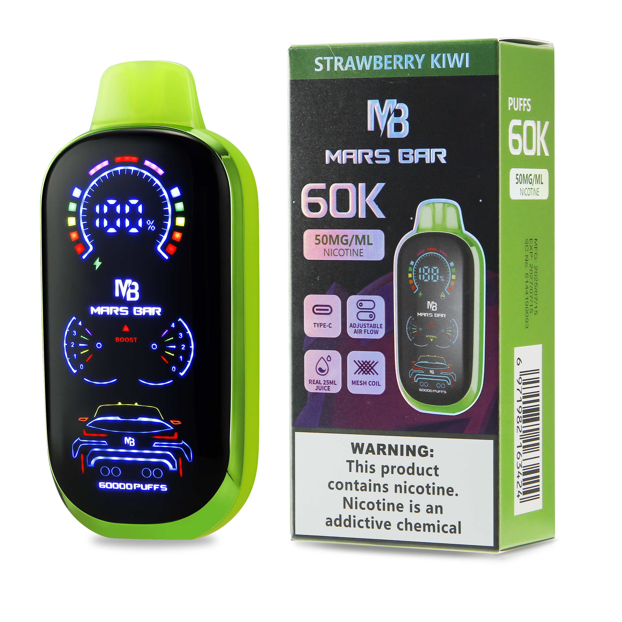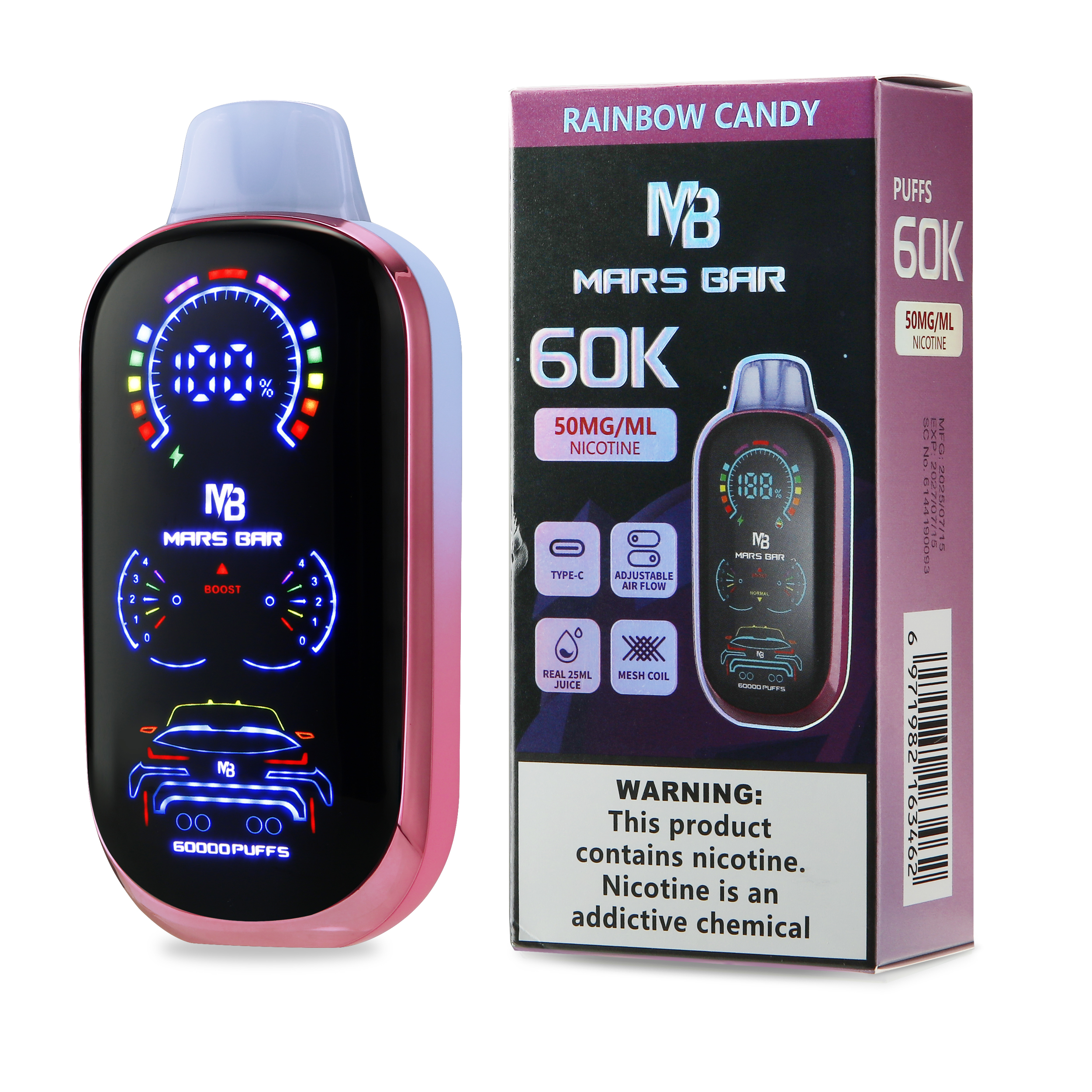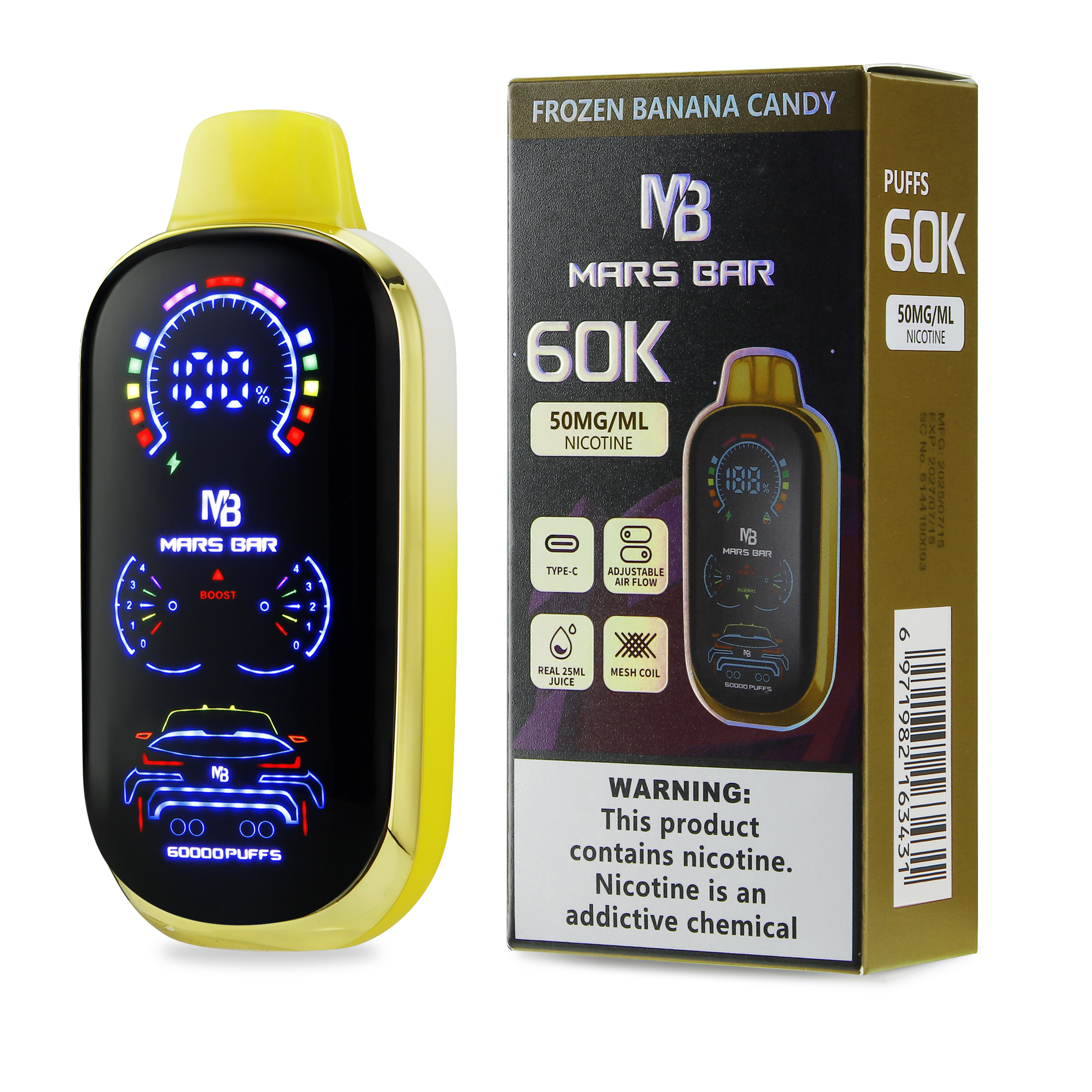Experience the Mars Bar 60K: engineered for exceptional performance, long-lasting capacity, and consistently rich flavor. It delivers up to 60,000 puffs from 25 mL of prefilled e-liquid, powered by an integrated rechargeable battery and a rapid-firing mesh coil.